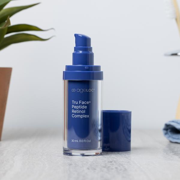 AgeLOC Tru Face Peptide Retinol Complex er en avanceret anti-age behandling, der kombinerer retinol og styrkende peptider for at forbedre hudens struktur, fasthed og glathed.